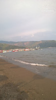 До моря 3 минуты или 120 м. И открывается шикарный вид на бескрайнее море с рыбками у берега. Заход хороший-песок. Свой пляж с лежаками и зонтиками.