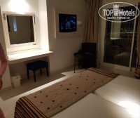 Начну свой отзыв с самого начала........) Отдыхали с подругой в Тунисе впервые. С самого прилета обрадовало то, что в аэропорту нет очередей и толпы народа кругом. Прилетели, получили багаж (очень быстро), сели в автобус и через пол часа мы уже в отеле. В отель приехали около 9 вечера и нас тут же отправили на ужин, после чего нас уже стали оформлять и заселять. Номер чудесный, большой (хотя у нас стандарт), ванная комната и туалет раздельные (что очень удобно), телевизор (с настроенными каналами), кондиционер, фен (хорошей мощности, что для девушек не мало важно:)), отдельная гардеробная, холодильник (работающий:)). В общем, все условия в номере есть и придраться не к чему. Персонал очень вежливый (с турками даже не сравняться), убирали номер каждый день, полотенца меняли каждый день. Территория отеля ухоженная, везде чисто (что очень обрадовало), ресторан один, но голодными не останетесь (были в 5-ти звездочных отелях, даже хуже попадались). Каждый день арбузы, клубника и вкуснейшее мороженное. Каждый вечер на ужин готовили что-то на гриле (овощи, рыба, мясо, мидии). Ну, а теперь самое интересное ) алкоголь !))) Мы всегда приезжаем со своим алкоголем, но так получилось, что он быстро закончился (ахаххааа), пришлось пить местный.......пиво отличное, не разбавленное, вино сухое белое рекомендую. Ну и конечно же самое главное на отдыхе АНИМАЦИЯ..........скучать не приходилось вообще. С утра и до поздней ночи ребята и девчонки развлекали на все 100. Конкурсы, игры, дискотека......Игры как у бассейна, так и на пляже в течении дня всегда, вечером после детской дискотеки, начитается шоу таааайм (ходили каждый день на выступления и ни разу не повторились), бразильское шоу (просто великолепные), аниматоры выкладывались по полной и потом уже можно оторваться на дискотеке (работала дискотека до последнего). МОРЕ - это просто сказка! Каждый день мы загорали только на пляже, вода чистейшая, песок чистый, белый, мелкий........Волшебно! Это просто надо видеть, словами не передать. Писать можно много еще, но это уже будет целая история. Приезжайте, не пожалеете! Я вернусь в этот отель еще не раз.