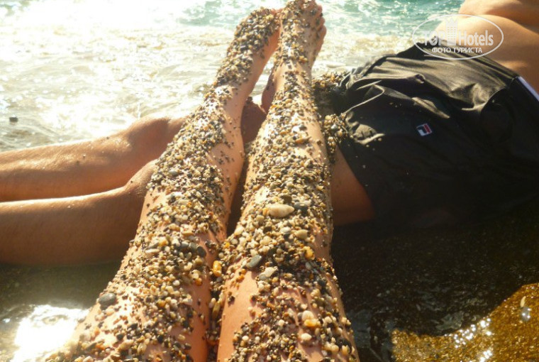 Пляж, с валунами при входе, но есть и пологий заход из не большой гальки.