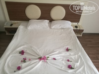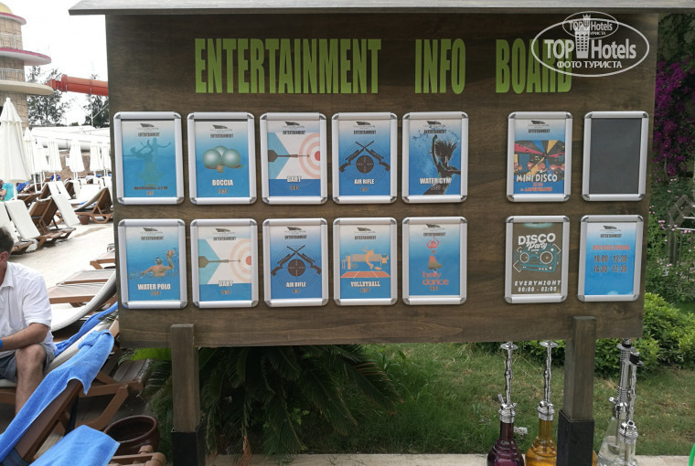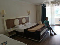Отдыхали в этом отеле с мужем и ребенком 8 лет с 05.06.18 по 18.06.18. От аэропорта Анталия до Гейнюка примерно минут 40.В отель нас привезли в 9.00, заселение в 14.00. Денег в паспорт не оставляли..заселили нас в анекс-корпус на 2 этаже, стандарт в номер 7205 с окном и балконом. Номер обычный одна большая кровать и одна односпальная, кондиционер работал исправно, сейф, окно с балконом выходило на соседний отель.ИЗ МИНУСОВ: В душевой кабинке дверца не плотно прилегала к полу и оттуда постоянно при принятии душа текла вода,которая потом была на кафеле в туалете постоянно в большом количестве. Еще из минусов конкретно этого номера, что уснуть ты сможешь только тогда когда закончится дискотека у бассейна, и разойдутся по скрипучей лестнице все по номерам, так как наш номер был практически напротив лестницы, и по времени это где-то около 00.30. Убирались в номере ежедневно,приносили шампуни,кондиционеры,гели для душа, мыло, меняли полотенца при каждой уборке.Спасибо уборщице приятная,вежливая женщина.) Сейф говорили, что платный но при заселении нам никто ничего не сказал,мы им пользовались, и при выселении тоже никто ничего не сказал, и мы и не платили, так я и не поняла платный он был или бесплатный). Показалось что маловато света в номере,всего два бра возле кровати и все, при чем один на половину весел на проводах. И продавленный матрас на большой кровати, при чем когда мы его подняли..под ним была большая вмятина и там подложены куча полотенец, видимо чтобы мы не скатывались в середину!ЖЕСТЬ! МОРЕ - море шикарное: чистое, сильно соленое, буйки далеко, что дает возможность вдоволь наплаваться! Пляж конечно не очень чистый, но это виноваты сами отдыхающие, кто не может донести свой мусор в урны.С лежаками проблем не было,если рано прийти на море то они всегда есть- свободные, ну если долго спать то конечно свободных можно и не найти) АНИМАЦИЯ - ребята молодцы трудятся с утра и до вечера, и детская и взрослая анимация просто супер!!! Из взрослой очень понравилась водная акваэробика, дартс, стрельба из ружья, танец живота и каждый каждый вечер разнообразные развлекательные шоу!Здорово!Из детской анимации ребенку особо запомнилось, когда пекли печеньки, играли в олимпийские игры, плели браслеты, и каждый вечер детская дискотека!!! ЕДА еда была разнообразная,не знаю читала отзывы про то что кто-то не мог найти что поесть..не знаю как!! На завтрак всегда пекли оладьи к которым можно было налить варенье в тарталетки разных вкусов и шоколад и мед. Также постоянно пекли круассаны и булочки из дрожжевого теста и слоеного. Жарили омлет и яичницу, постоянно были овощи, зелень, не очень вкусная колбаса, и сыр на любителя.На обед супы, из гарниров картофель тушеный, печеный, жареный, пюре, фри, крокеты, макароны с подливками, рис, из мяса курица, индейка, говядина, много зелени, овощей (сырых, соленых, на мангале, вареных и в салатах и т.п) всякие рулетики и всего не перечислить. На ужин всегда что-нибудь вкусненькое, в последние дни часто была шаверма из баранины или курицы, очень вкусные таяли во рту стейки из говядины.Очень вкусный томатный суп)) Много десертов, тортиков. Из фруктов были вкусные яблоки,апельсины, груши и грейпфрут, два дня были персики и абрикосы очень сладкие, в остальные дни их не было( Из бара делали коктейли: мохито, пина коладу, секс на пляже; также было мартини, шампа