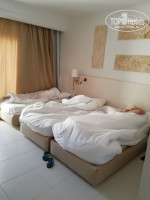 Приехали мы в отель около шести вечера. Встретили нас дружелюбно, расселили. Номер достался на втором этаже, с небольшим видом на море. Номер не очень большой, но для троих вполне места хватило. Ванная комната просторная: душ, раковина, унитаз, биде. Номер хороший и чистый. Смена полотенец и уборка номера каждый день, уборка заключалась в мытье пола только середины номера, углы, под стульями не мыли, пыль на столиках не протирали. Воду и шампуни-гели не ставили. На уборку мне было плевать - пол намыли и хорошо! После заселения мы пошли на ужин. Ресторан был полупустой, столов всем хватало. Столы стоят как внутри помещения, так и на улице. Первое, что мне бросилось в глаза по сравнению с другими отелями - это количество лотков с едой, их не очень много. Салаты, сладкое, горячее и др. - выбор не большой - все по одному небольшому столику и лотки с едой не дублируются. Хорошо, что заселенность отеля была не полная и еду пополняли вовремя. В целом о питании: еды хватает, голодным не останешься, но разнообразным питание я не назову. Готовят съедобно, не остро, иногда даже недосолено, но это и лучше - посоли себе сам. Крабы и мидии давали по разу, но это и не основная еда, на них далеко не уедешь)). Рыба на гриле каждый день. Картофель редко, пюре один раз, макароны и рис каждый день. Завтрак более скудный, чем обед и ужин. За блинами и омлетом очереди - персонал не расторопный. В омлет начинку (колбаса, сыр, помидор) - либо вообще не кладут, либо положат очень мало. Также на завтрак нет помидоры. К концу отдыха суховатый омлет начал надоедать. Просто яйца жарят в большом количестве масла, как во фритюре - не каждый желудок такое выдержит. Сына спасали блины, мне они не очень. Из выпечки - три формы булочек - для меня все одинаковые на вкус. На завтрак чай, кофе, кофе далеко не очень! я вообще не спец по кофе, но даже я не смогла его пить. На обед и ужин чая, кофе нет, только юпи, кола. Хочешь чай кофе - иди за ним в бар у бассейна. В обед проблема с ложками к супу. Очередь за ложками больше, чем за супом - ложки приносят, но по три-пять штук. Сначала берите ложки, потом наливайте суп. Также периодически проблема с чашками и стаканами возле напитков. Фрукты! кто-то пишет, что большой выбор! я этому удивлена! на завтрак их нет вообще, на обед только арбуз, на ужин только дыня и что-то одно: либо абрикос, либо персик, либо нектарин. Часть фруктов не спелая, часть уже перемятая, поэтому лучшая часть быстро расхватывается отдыхающими. В сторонке еще лежат апельсины, которые особо никто не ест, и их кучка даже не пополняется. Ни сливы, ни клубники, ни фиников не было ни разу! Между обедом и ужином можно перекусить на улице около ресторана - те же пицца, булочки и блины. Итого по питанию: день на день не приходится - иногда вкусно поешь, а иногда и взять чего не знаешь.