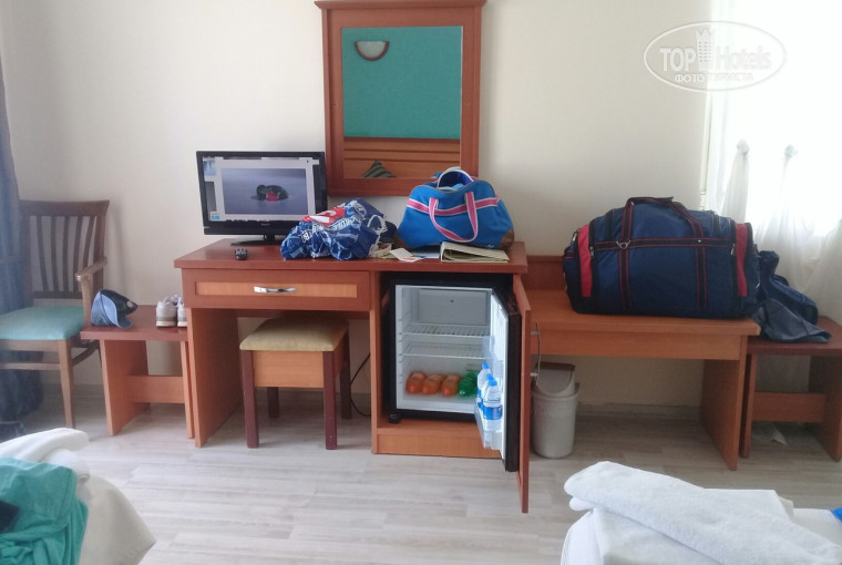 Хотелось бы все по порядку написать... но напишу об основном. Приехали в 9,00 нас заселили в 11,30. это порадовало. Но пока мы оставили вещи пошли переодеться в хама. Там нам сразу предложили платный хамам за 30 дол. но мы отказались решили деньги сильно не тратить и пошли покушать. Еды было много разной. Кто пишет что еды мало это не правда. всегда можно найти то что хочется тебе. Знакомые были в 4* я им рассказала что мы ели пили. она сказала у них много чего не было. Номер стандартный. все есть. сейф 10 дол. за 9 дней. в номере. холодильник с газ водой и водой. телевизор кондиционер 2 кровати одна большая другая маленькая. 2 раза за 9 дней попали на турецкую ночь. Весело празднично. Каждый вечер почти какие то мероприятия. Выездные дискотеки платные 10 дол с человека. Была пенная дискотека на пирсе то же 10 дол с человека. Уборка у бассейна и на пляже зависела от персонала который дежурил. Всегда почти было все чисто кроме 2х дней. дежурили какие то ленивцы. даже в туалете на улице не было бумаги и грязь. А так за людьми которые сами все везде бросают в принципе успевали убирать. Еще раз про еду: еды много, курица индейка рыба каждый день но не красная, были блюда с баранины но чистого бараньего мяса кусками не было... Шеф повар всегда следил за всеми и стойками с едой. Очень приятный человек. Кстати готовили прямо при тебе яичницу овощи рыбу и еще много чего. Много пирожного, овощей, фрукты не все, были яблоки груши грей фрукт апельсины и зеленые ягоды типа слива. 2 раза арбуз. Анимация: Нико супер... Девчонки с УФЫ аниматоры классные, веселые, общительные. Анимации много и почти целый день. В последний наш день отдыха приехал еще один парень аниматор он вообще зажигалка. Море: пляж галька. но нам не мешало прыгали с пирса. да и с берега заходили. но сразу напишу с берега мелко мало. сразу же глубоко. если деткам.. Есть пирс с лежаками и зонтами. Не понравилось что отдыхающие постоянно занимали лежаки и уходили. а сами могли и по 2 дня не приходить. потом ищут свои полотенца. Самое главное что мне не понравилось это стаканы (просто ужас) в баре. Я бы посоветовала руководству отеля заменить на одноразовые стаканы. они на столько обшарпанные ( пластик сделан под стекло) противно пить. в соседнем отеле мы видели у них одноразовые хорошие стаканы. Это очень большой минус для меня лично. только по этому бы не вернулась в этот отель. Территория да маловата для этого отеля. но нам хватало. Территория за отелем: до Аланьи 35 км. можно доехать. а так только вдоль отелей погулять да на рынок. мы гуляли. Руководство отеля всегда там следит за всем и всеми. Официанты вообще все классные улыбаются. Алкоголь местный пиво написано туборг. но с нашим не сравнить. если бы нашего столько выпили сколько их. то не встали бы ни когда. Водка 27 гр. в основном все пили виски 37 гр. еще махи то, виски кола, было и еще кое что. Иногда коктейли заканчивались. и пили отдыхающие то что было в наличии. Спиртного дают в одни руки 2 стакана. потом хоть каждую мин. подходи. Спиртное наливают с 10,00 до 02,00. Все без закуски мы так не привыкли. Вообще ни чего нет. можно было хоть платно сделать. я бы купила какие нибудь сухарики или чипсы или рыбку к пиву. Кому нужно те напивались. Мороженное было платное потому что май. с июня сказали 1 час бесплатное дают. На пляже бара нет. есть не доходя до пляжа. и то он не всегда работал так ка