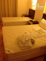 Прилетели мы поздно вечером и еле успели к концу ужина. Ели остатки с этого самого ужина и естественно что было не очень, т.к. все посъедали. Далее нам дали ключи, показали рукой в какой стороне корпус, и сказали номер. В номер мы шли сами, поднимали чемоданы САМИ ( номер был 718 на 4 этаже), и это учитывая что с нами был пожилой человек 70 лет. При замечании что ей тяжело подниматься каждый день на 4 этаж, поменяйте номер пожалуйста, развели руками и сказали мест нет. Затащили мы кое как эти чемоданы, благо с нами был мужчина. Дальше веселее. Заходим в номер. Номер сразу скажу нормальный, конечно есть в ванне грязь на швах, стаканчик для щеток не мытый, мыльница грязная. НО самый шок был когда мы увидели кровати. Они были даже не заправлены. Просто голые матрасы. Так же не работал телевизор (который кстати точь-в-точь как на фото в обзоре ниже), не было лампочки одной, думаю о том что не работает дозатор вы уже прочитали в других отзывах. Затем пришел парень с рецепшена принес спальные принадлежности, полотенца(1 большое и 1 маленькое на человека) и положил их на кровать. Мы ему сказали про телевизор и лампочки, а так же про то что номер не готов к заселению даже, почему нет простыни и прочего, мы сами должны заправлять? Он сказал что уборщицы сейчас нет и снова развел руками. сказал что сейчас вернется и ушел. Мы подождали пол часа и в связи с тем что устали с дороги и хотели спать сами уже кое-как заправили постели и легли спать.