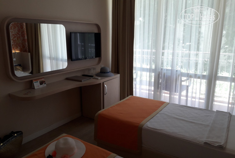 Отдыхали в начале июня 2018г. ПЛЮСЫ: 1.кухня. Еда вкусная, достаточно разнообразная. 2. Близость к морю, буквально зашли по дорожке за поворот и море. 3. Свой пляж с лежаками и зонтиками. 4.Рядом остановка маршрутки, можно попутишествовать самостоятельно. 5.Если Вы приезжаете ранним утром, на Вас одевают браслет и Вы можете идти в столовую, на пляж...5.Комнаты с новой мебелью, персонал отзывчивый, кроме ЛЫСОГО на рецепшене.МИНУСЫ:1.Размещение только с 14.00, людей очень много. 2. Если Вас поселят на первом этаже, будьте готовы вдыхать ароматы канализации, у них явная проблемма с трубами. Мы включали душ и ждали пока вода протичет, что бы уходил запах:((В переезде в другой номер нам отказали, ссылаясь на загруженность отеля.3.Слышимость!!!! О чем говорят Ваши соседи, Вы будете знать в деталях. Особенно ночью, если Ваши соседи захотят поговорить в ванне))такое чувство, что с содним номером нас разделял лист гипсокартона.4.Платная услуга глажки вещей. Утюг взять и погладить самостоятельно не дадут, а цена на глажку 1 вещи от 3$. Вообщем то отдых у нас удался, кухня хорошая, музыка только до 11, с соседями договорились разговаривать шопотом, воду сливали, что б канализацией не "пахло".Море супер, берите маску обязательно, дно бедное, но есть черепахи!!!!приплывают утром и после 5 вечера.