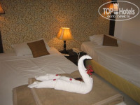 Номера. В отеле постепенно обновляют номерной фонд, меняют мебель, делают ремонт. Номера без ремонта на троечку. В нашем номере из обновлений был ЖК телевизор. Комары, берите фумитокс. Наш уборщик молодец, за 10 футов нам три для подряд лепил лебедей, сердечки, цветочки.
