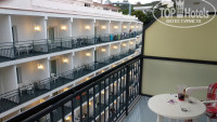 Номер достался на 6-ом этаже (последнем) с видом на соседний отель Фламинго. Балкон огромный с веревочками для сушки белья, пластиковым столом и двумя пластиковыми стульями. Рядом с отелем клуб Gala, где тусовки до 5 утра, но шумоизоляция номера была достаточной, чтобы комфортно спать. Но у кого номера выходили на улицу, там шум стоял всю ночь.