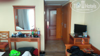 Номер небольшой, но уютный. Были две кровати (на мой взгляд жестковатые) и софа. Шкафы и остальная утварь не старые.