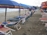 Спуск в морю несколько минут. Лежаки и зонтики — бесплатно. Пляжных полотенец нет. Берите с собой. Песок очень мелкий, поэтому вода мутная. Очень чисто. Каждый вечер просеивают песок специальными граблями с корзиной. Бич бой постоянно ходит и следит за порядком. Очень ответственный парень. Вещи ни у кого не пропадали.