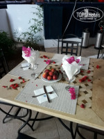 Питание в отели достаточно разнообразное и рыба, мясо и фрукты (клубника,арбуз,дыня,персики,сливы,что то их местное название и не спросила) , картошка, макароны,рис и т.д. Вообщем голодным не останешься. Отдельное им спасибо за выпечку ну очень вкусная). За 2 или 3 динара накроют Вам и стол с цветочками, и он всегда будет для вас забронирован (приходишь на обед или ужин а нас толе уже фрукты и напитки).