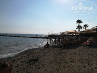 Сам пляж (песочный) нам не очень понравился. Даже не он сам, а заход в воду. Неудобно и больно заходить по камням, особенно детям, нам всем пришлось покупать специальные тапки. В море главное было зайти, потому что через 1-2 метра опять начинался песок. В целом море очень тёплое, чистое. Пляж отеля не большой, но чистый и ухоженный, есть кафе с едой и напитками.