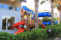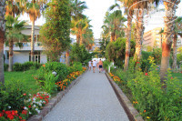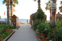 ПЛЯЖ можно охарактеризовать одним словом !!БОЛЬ!! галька идеального размера чтобы причинять максимальную боль ступням (мне пришлось первый раз в жизни купить специальную обувь для купания). Но и это ещё не всё дно очень круто уходит в глубину, также добавляют проблем родителям большие волны (лично видел, как мальчишку 12 лет перевернуло волной и прокатило лицом по гальке пол-лица в кровавых ссадинах). Да что там детям даже мне бывало в специальной обуви зайти и выйти из моря очень проблематично на минуточку я почти два метра ростом 130 кг веса. Ещё рядом впадает река Алара в море. В связи с чем на поверхности моря всегда небольшая муть и более прохладная вода. Во всём выше описанном отель конечно не виноват и, если вы поедете в какой-нибудь другой отель рядом даже в более дорогой и навороченный вы всё равно столкнетесь этим ужасным пляжем.