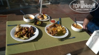Мы отдыхали во вне сезон, поэтому на пляже бар был открыт , а у бассейна закрыт. В пляжном баре можно было вкусно поесть, поэтому мы обедали там- заказ принимает официант, меню стоит на каждом столе. Мы ели картофель фри и индейку с овощами на гриле, все очень красиво оформлено. Так же в баре есть газировка, вино, пиво. Может и по крепче есть но мы там не пили, не знаем. Так же в отеле есть после обеденный чай с печинюшками, пироженками.