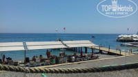 По пляжу ещё раз. Он реально маленький. Лежаки стоят слишком близко, что бы пойти на первый ряд надо переступать или через столик или через мусорку, или обходить метров 20-30. Пляж - мелкая галька, можно ноги сломать, если не купить специальную обувь, которые растягивается через пару дней и слетает с ног. Есть пирс, но лежаки там заняты с 6 утра и туда ходят с соседнего пляжа, хотя есть запрещающие таблички!