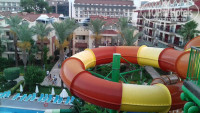 Успокоились. Балкон в 2х метрах от горок, где после 10 утра шум и гам. Но пережить можно. Территория отеля маленькая. Спотыкаешься об людей. В их блатные рестораны не попасть. В пятерке, в отпуске надо вставать в 8 утра что бы записаться на ужин.