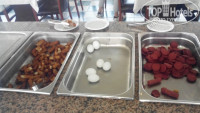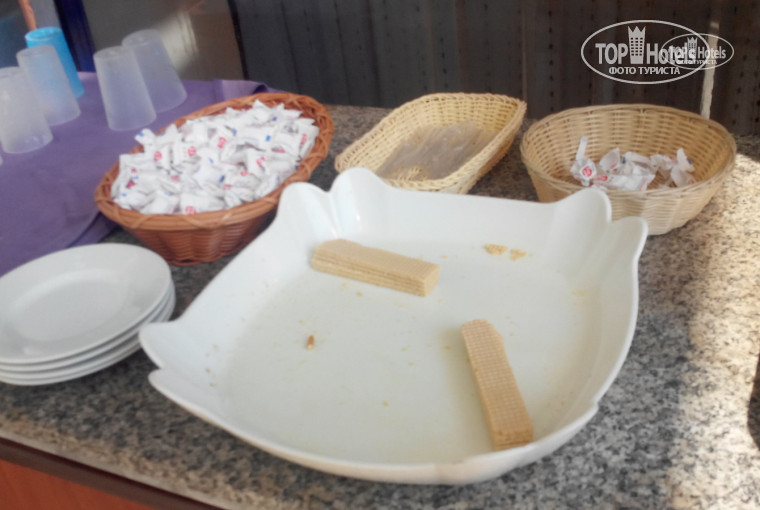 Весь персонал отеля от силы 10 человек. В столовой-семейство злобных азербайджанцев. Человек 5-6. Кто из них готовит, так в итоге и не поняли. То она говорит, что повар, то-посудомойка. Никакой униформы. В Турции 5-й раз, но такого ужаса не встречала нигде. Это надо сильно стараться, чтобы так портить продукты. Открыли для себя новый салат: вареная картошка, резанная кружочками, сверху накрошено вареное яйцо. Зелень видели мелкопорезанной в салате огурцы-помидоры. Живьем за 14 дней появилась 1 раз. По утрам каждый день исключительно вареные яйца. Пару дней был омлет. Сладости отсутствуют как класс. Из выпечки только батон белый, изредка серый. Завтрак с 8-ми часов, но есть там нечего. Особенно детям. После неоднократных скандалов, с едой стало чуть получше. За день до отъезда в обед были прокисшие макароны, на ужин все холодное. Из фруктов арбуз, яблоки, апельсины. Один раз увидели полугнилую черешню. Рядом с посудой мирно соседствует швабра с половой тряпкой.