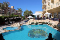 Отдыхали с 18 по 25 июня. Прилетели около полуночи, за 10$ нам предложили номер с видом на бассейн, но там все равно был вид на стройку рядом с отелем, так что смысла особого не было) Также не рекомендую переселяться в Сфинкс (вам предложат за 60$), т.к. он с ним на одной территории, пляжи и бассейны общие, готовит один и тот же повар. Номер(412) не новый, но всё работало исправно и днем жарко в нем не было. Что мне больше всего НЕ понравилось в этом отеле - это уборка: постельное с прошлых постояльцев видимо не меняли, пыль с полок не вытерли. В ресторане столы протирали чем-то, после чего они оставались липкие и в разводах. Но: полотенца каждый день забирали утром, после обеда приносили чистые. Пляжные полотенца утром можно взять на пляже, вечером сдать, что очень удобно. Питание: выбор не очень большой, но в принципе вкусно и сытно. Напитки плохие. Можно бесплатно записываться на ужин в ресторан a`la carte, который расположен на пляже на территории Сфинкса, что мы каждый день и делали)