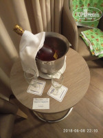 Заехали в 11 вечера, в номере нас ждал ужин. Номер был на 6 этаже, мы так поняли, что всех русскоговорящих туда поселили. В отеле на наш период было много пенсионеров из Германии, для нас так даже лучше было. На второй день в номере стояла бутылка шампанского с бокалами, с визиткой директора отеля. Но губу не раскатывайте, нашим соседям не поставили, например. Может карма или совпадение, но мы не стали выяснять.