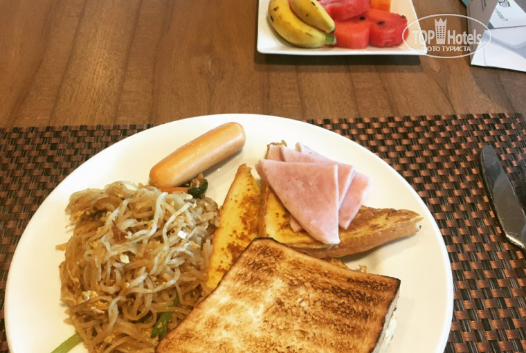Завтрак проходит с 7 до 11 часов (примерно), чтобы все успели проснуться и позавтракать. К тому же там не так много мест, так что продолжительный завтрак даёт людям приходить позже или раньше, чтобы не сидеть на голове у соседа. Еду всегда пополняют, чтобы ничего не закончилось. Торопиться что-то взять или стоять в очереди там совсем не нудно! На завтрак дают хлеб (котрый ты тут же можешь сам запечь (тост)), рисовую лапшу в соусе, яичницу, колбасы, булочки, оладьи, разные хлопья с йогуртами или молоком (обычное, шоколадное или клубничное), а так же множество разных фруктов.