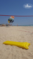 По утрам трактор с ковшом возит песок на природную плиту!Но и она не беда,в стороне от плиты прекрасный вход в море!Вода чистая и теплая!Есть бар на пляже!