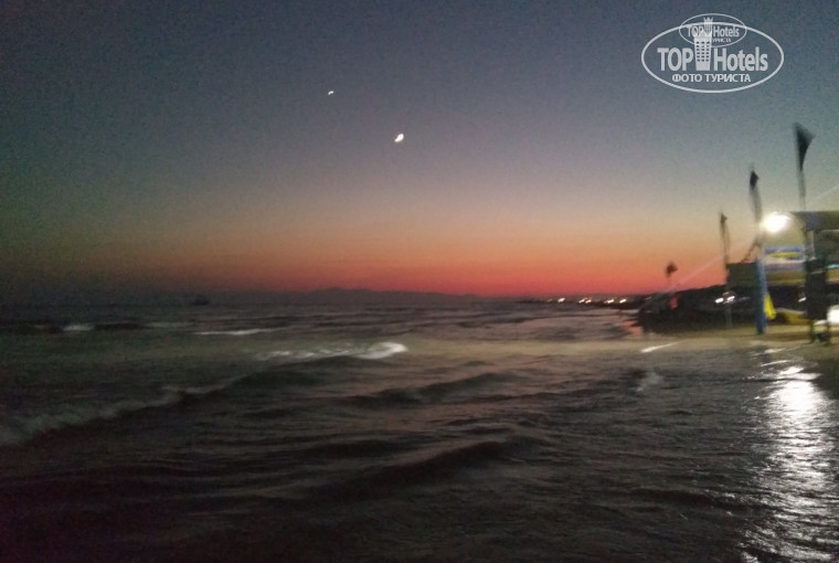 Про пляж много написали до меня. Пляж хороший, утром его немного очищают, ровняют. Но песок грязный из -за окурков и нанесенных с моря веток, палок. Лежаков много. Вода не такая соленая как а Алании, не так щипит, когда в глаза попадает - это большой плюс для деток. Море очень волнуется. Все 2 недели тут были волны, некоторые дни волны такие , что сложно зайти и выйти из воды- накрывает с головой, сносит. Глубины нет, можно дойти пешком до буйков. Берегитесь камней. Мы, когда на парашюте над пляжем пролетали, то видели эти камни- несколько метров груды острых камней. Люди часто ранились. Лучшее купаться совсем с лева у чужого отеля или справа рядом с водными развлечениями. Душ на пляже есть, в нем очень холодная вода. Поскольку вода не очень соленая, то мы обмывали только ноги, дальше шли в номер и мылись там. Туалеты на пляже приличные, что их убирают.