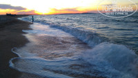 - теплое море 24 гр (особенно после Ялты с 20 гр) - каждый день разное, то волны, то спокойное. Главное - теплое. И ПУСТОЕ - во все стороны никого! Долго мелкое, купаться одно удовольствие. Единственное, когда было спокойное - нам не понравилось, стали плавать водоросли и появились какие-то жучки, которые кусались... Но это было один день. Потом опять волны - и опять чистое и замечательное. Больше 3х баллов не было, один раз вывешивали красный флаг но все купались.