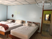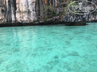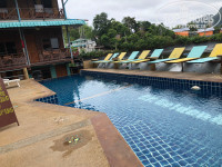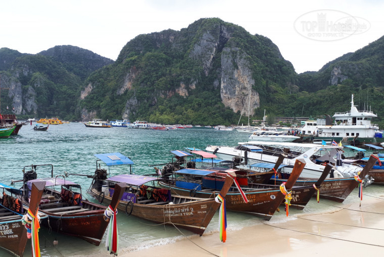 За день до приезда на остров на сайте Booking.com забронировали в отеле бунгало на троих за 825 бат сутки. От пирса идти далеко, отель находится на горе, направо мимо всех торговых лавочек и до самого конца острова, (на карте сайта Букинга местоположение обозначено неправильно и отель находится гораздо дальше, обращайте на это внимание) нужно подниматься в гору по ступенькам и обойти искусственный небольшой водоем (помогало искать отель приложение Maps.me определяя нашу геолокацию). На Букинге отель называется «Golden Hiil Bungalows», а возле отеля вывеска с названием «P.P.Golden Hill». На ресепшене берут залог 500 бат. Отель небольшой и очень скромненький, только бросить вещи и уставшему переночевать, не больше. Бунгало у нас было отдельное №В2 в виде деревянного сарая среди деревьев, от ресепшена налево вверх по лестнице. Комната конечно соответствует тому что мы бронировали, но то что всё будет так примитивно далеко от центра и на горе не ожидали. Есть небольшой бассейн, с виду чистый (мы не купались), возле бассейна бар. Питание мы не брали, так как цель была только переночевать и оставить вещи, мы в 6 утра отплывали на остров Пхи Пхи Ле. Условия проживания самые минимальные, одна комната с двумя деревянными окнами и разными занавесками, без сеток, но створки открываются и закрываются, в комнате чисто. Небольшая тумбочка, зеркало, три односпальные кровати с чистым белым постельным бельём и большими полотенцами на каждой постели (это порадовало). Один работающий светильник над кроватью, две розетки, вполне можно зарядить телефон и фототехнику. Нет ни стульев, ни шкафа, ни вешалки, некуда положить вещи, одежда лежала на кровати, неудобно. В бунгало душно, у потолка висит старенький вентилятор, работает от обычного пульта. Ванная с душем и огромными щелями в деревянных досках, через которые забегаю иногда мышки, вода только холодная, мыльных принадлежностей нет, нужно брать свои, была только туалетная бумага. Открытый балкон, если это можно назвать балконом)))) сразу у входной двери, тоже из досок и тремя грязными пластиковыми стульями. От отеля идти до смотровой площадки не далеко 5-7 минут, вход 30 бат за чел., до центра и пирса идти далековато по закоулкам 15-20 минут. Ночью было тихо и мы спокойно выспались.