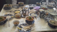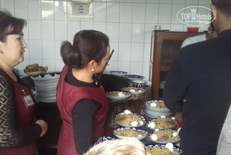 В отель приехали около 18 часов по местному времени. И нас начали расселять по номерам. Мне с коллегой дали номер на первом этаже. Мы с ней как вошли, так и ахнули! Сказать, что номер был убогим - это ничего не сказать! На окне было подобие жалюзи в жалком сломанном состоянии. И они совершенно не закрывали окно. Напротив отеля находится автомойка, и все мужики-узбеки, ждущие пока помоют их машины, собирались курить прям под наше окно! А это был ПЕРВЫЙ ЭТАЖ и БЕЗ ЗАНАВЕСОК! Далее оглядев номер более внимательно, мы заметили, что по номеру были раскиданы какие-то чужие вещи. Оказывается, нас заселили в номер, в котором уже кто-то жил! Мы вернулись к девушке-администратору просить другой номер, т.к. в этом уже кто-то жил. На что она нам ответила, что свободных номер НЕТ! Это было очень странно, ведь встречающая сторона (фирма в Ташкенте) должна была забронировать номера на всех. Тут всё таки в наш спор с администратором подключился встречающий нас сотрудник ташкентской фирмы. И Ура! Нам нашли другой номер на втором этаже. выглядел он не лучше предыдущего, но окно занавешивалось))) При заселении девушка-администратор нам озвучила сумму - 450 000 узб. сум (или 58$). В отеле мы пробыли три ночи, и при выезде нам вдруг озвучили сумму в 600 000 узб. сум (или 77$). Объяснения по поводу резкого роста цены нам отказались дать и мы были вынуждены доплачивать еще 150 000. Завтрак был аля "шведский стол", но выбор весьма скудный. Каша, пару салатов, яичница, оладьи и немного фруктов. Вообщем если хочется кушать, то выбрать можно.