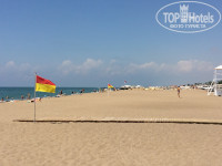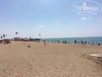 До пляжа идти не далеко 5-7 минут, ходят автобусы до пляжа, но мы никогда не пользовались. По дороге до пляжа разные магазины, небольшая дорога. Не доходя до пляжа есть теннисный и баскетбольный корт. Мячи, ракетки все бесплатно.Полотенца также бесплатно, за карточки. Территория пляжа большая, чистая. Всегда хватало лежаков. Так же есть волейбол на песке. Всегда ходят раздают вкусные коктейли за 1-2$. Есть хороший пирс, там находятся лежаки и есть автомат с прохладительными напитками.Вход в море замечательный, песок. За пляж 5+.