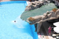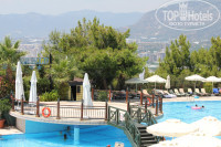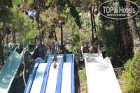 По территории несколько бассейнов: основной - считай на самом солнцепёке, для любителей максимальной прожарки, чуть ниже небольшой бассейн, но с шикарными видами, ещё чуть ниже "релакс"-бассейн, вроде на нём было на писано +16 (мол ток без детей), ходили туда один разок после ужина... ляпота, вообще никого, тишина... Так же есть ещё несколько бассейнов в районе аквапарка. Про аквапарк - вполне себе аквапарк: несколько видов горок для тех кто постарше, детская горка + есть отдельная часть с бассейном по колено и кучкой горок аттракционов для совсем малыше + есть сплав на кругах по "реке" с горками. По началу показалось, что мало кругов для сплава по речке, но потом их видимо добавили, и время ожидания своей очереди сильно сократилось. Ну и возле каждого бассейна есть бар с соками, коктейлями, у аквапарка так ещё и небольшая столовая с закусками, фруктами, мороженным. В прошлом году отдыхали,чтоб не ругаться, в Goynuk-е. Там в отеле было несколько случаев, когда люди подхватывали кишечную инфекцию, здесь, не смотря на несколько дней активного промывания всего и вся водой из аквапарка, ничего подобного не видел. Чистят хорошо.