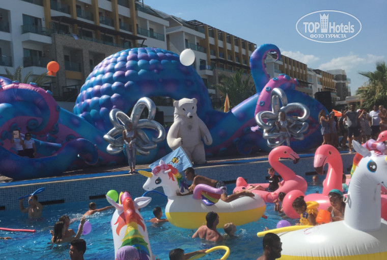 Анимация... Тут и сказать то нечего... Мы попали на 5-летие отеля и конечно впечатления не просто супер, а СУПЕР!!! Вечеринки у бассейна, вечерняя анимация, обливание шампанским, вкуснейшие коктейли, летающий человек- мистер Али, пенная Beach-party, невероятнейшей красоты фейерверки, Horror-party и конечно же концерт Монатика (он очень крутой!). В общем скучать не пришлось. Единственная просьба к администрации отеля где-нибудь размещать информацию и о дневных мероприятиях, а то можно быть у бассейна и пропустить что-нибудь интересное у моря, или наоборот.