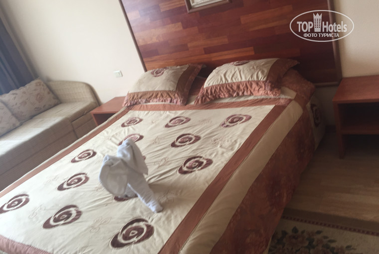 Для выходных в Таганроге выбрали этот отель впервые.Номер очень порадовал размером, балконом, комплектацией (свч,большой холодильник,чайник и столовая посуда), улыбнул слоник из полотенец на кровати.Заселение/выселение быстро,без проблем, сотрудники работают доброжелательные.На территории много зелени, особенно удивили цветущие и пахнущие кусты похожие на бульдонеж или белую сирень (не видела даже никогда такое чудо)! Бассейн маленький но глубокий, много реагентов...но и людей много.