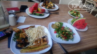 Мы отдыхали в этом отеле в конце июля. Приехали рано утром, зашли на ресепшен, нас тут же отправили завтракать. Заселили около 12 часов. Номер был отличный! В блоке В двухкомнатный номер с огромным балконом, хотя нас было только двое. Это приятно.) в номере телевизор, кондиционер, холодильник. Всё работало исправно, кондиционер охлаждал, холодильник морозил.)) не работал только фен в ванной, но мы на эту мелочь не обращали внимания. В ванной комнате душ, унитаз и большая раковина с зеркалом. Вся сантехника работала, никакой плесени нет, вода приятной для поджаренного на солнце тела температуры))) убирались практически каждый день, за 7 дней дважды поменяли постельное белье, полотенца по нашей просьбе поменяли мгновенно)) насчёт питания: многие блюда могут показаться вам странными, но вы не дома, попробуйте турецкую кухню вместо борща)) на завтрак сосиски, колбаса, сыр, яйца, каша и свежий хлеб с джемом. На обед и ужин множество разных салатов, горы кабачков и баклажанов, всегда салат из свежих овощей и рукколы, горячее сначала порционное, а когда все гости разобрали по тарелке, оно становится общедоступным.)) дважды давали рыбу, говядину, но чаще курица в разных видах. Да, мужчинам придётся наверняка прогуляться в течение дня перекусить, девушки будут точно сыты.) выпечки нет, оно и к лучшему)) вместо неё каждый день сладкие арбузы. И вкусно, и полезно)) В баре не отказывают. Советую подружиться с барменами, тогда на вас не будет заканчиваться алкоголь)) кроме того, они хорошие ребята.)) бассейн не слишком большой, но дискомфорта не доставляет, всем хватало места. Прокатитесь с горки, это весело)) лежаков полно. В 19.00 бассейн закрывается на чистку и открывается только утром. До моря идти минут 5. Будьте осторожнее на дорогах! Водители носом не поведут, чтобы пропустить вас! Мы были немного шокированны движением в Мармарисе)) пока будете идти к морю, услышите соловьиный свист - идите на звук))) это щебечет местный продавец экскурсий Герасим)) у него смело можно покупать экскурсии, свсе будет в лучшем виде и вдвое дешевле чем у гида. В первый день сразу идите в хамам (10 долларов у Герасима, 25 у гида) и через пару дней на Слияние двух морей (25 долларов у Герасима, 50 у гида), но это уже больше для молодёжи конечно. Да, своего пляжа у отеля нет. Чтобы улечься на удобный лежак под зонтиком, вам придётся что-то купить, например бутылочку холодного пива за 10 лир, и лежать себе сколько угодно.)) а если вы молодые девушки, то вас будут звать просто так, бесплатно, и этому можно верить, ведь глядя на вас, на этот же пляж решат зайти молодые люди, а уж они то точно что-нибудь купят)))) кстати о молодых девушках. Вы почувствуете себя королевами красоты в Мармарисе, потому что стройные загорелые турки будут купать вас в комплиментах и приглашениях погулять)) сомнительное предложение, но тут уже каждому свое)) касательно развлечений: это Мармарис, детка!))) до кипящей ночной жизнью, клубами и ресторанами улицы баров можно прогуляться по набережной (минут 30 прогулочным шагом), а можно воспользоваться бесплатной маршруткой, которая заберёт вас из отеля в 23.00 и доставит обратно в 3 часа ночи. Об этом вам расскажет девушка Лена, которая наверняка зайдёт к вам за ужином)) на улице баров всех девушек окликают зазывалы и упрашивают зайти в клуб хоть на 5 минут, а они за это дадут вам коктейльчик)) н