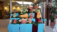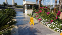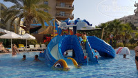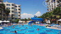 Отдыхали 2- мя семьями, в отель приехали около 11.00, сходили на поздний завтрак, сразу получили ключ от одного номера, ближе к 14.00 заселили во второй. Номер достаточно просторный (корпус Де люкс), у нас на двоих с сыном была 2-х спальная кровать и 1- но спальная. Вода в холодильнике пополнялась, иногда приходилось приносить из ресторана. Телевизор с достаточным количеством русских каналов, кондиционер и т.д., всё новое. Вид из окна на соседний отель, но поскольку в номере только спали, этот момент не огорчил. Звукоизоляция у окон хорошая, то что делалось в коридоре, всё слышно, но по ночам спать никто не мешал. Кухня на мой взгляд достаточно разнообразная, готовили баранину, индейку, рыбу, говядину с овощами, естественно курицу, ну и всё, что обычно бывает в турецких отелях. Из фруктов- арбузы, дыни, персики, яблоки (один раз), сливы (не совсем зрелые), апельсины (постоянно), грейфрукты, может что-то забыла. Десертный стол - замечательный, лично я для себя присмотрела пахлаву. Мороженное до обеда на пляже, вечером у амфитеатра, бесплатно. Хорошая анимация, выступали с танцами турецкие, грузинские, африканские группы. Зарядку можно делать весь день, её проводят в разных местах. Дартс, волейбол, футбол, боча (типа керлинга) и др. игры, которые организовывали аниматоры. По поводу алкоголя, пиво наливают в 3-х местах + ресторан, вино кисловатое, крепкие напитки в одном баре (на счет их крепости очень сомневаюсь, но 2 - х недельный отдых не был испорчен созерцанием напившихся соотечественников). Туристы в основном россияне, наверное больше 90 %. Хорошая зеленая, оформленная территория, есть пару магазинчиков со всем необходимым. Недалеко от отеля несколько магазинчиков с текстилем, сладостями. Также рядом продают экскурсии, брали 3 экскурсии, все прошли хорошо. Пляж - песок, шезлонги, навесы, надо приходить по- раньше чтоб занять место ближе к морю. Вход в море галька (не мелкая), это конечно минус, ногам было не комфортно, на пляже предлагают платно парашют, ватрушку, банан, скутер. Минутах в 20-ти от отеля (пешком) пос. Конаклы с кучей торговых точек. В общем и целом впечатления от отеля и отдыха остались положительные!