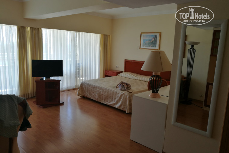 Жили мы в главном корпусе, с видом на море. В номере хорошая мебель, огромный балкон, кондиционер и сантехника в порядке. Неудобство в ванной к стене приделанный душ. Минибара нет. Воду сначала наполняли в свои бутылочки из кулера в столовой.Потом заметили в ней запах хлорки. Стали покупать в минимаркетах в поселках когда ездили. При отеле тоже есть минимаркет - но там цена завышена очень.