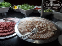 Купили путевку в этот отель спонтанно..за неделю, не дорого, на неделю ...решили смотаться , вылежаться. Почитала отзывы..кто чего пишет, но это как всегда. Сколько людей столько и мнений. Поэтому не особо переживая поехали... Выбрали рейс с конкретизацией..доплатили, что бы не перенесли..поэтому в отель приехали до обеда (т.к рейс был ранний). Трансфер долгий был более 2 часов. Заселили почти сразу..после того как поели в столовой. На ресепшене была девушка русскоговорящая(забыла как зовут) подошли к ней поулыбались дали шоколадку(как всегда) и номер был дан без доплат на 6 эт.(просили тенечек) сбоку вид на море и на горы и соседнее вдалеке здание на крыше. Нас все устроило. Номер был чистый ковролин не заляпанный (как пишут) все чисто белье чистое..все посмотрели все устроило. Переоделись и пошли на море, нашли полотенца где получить пляжные. Через подземный переход мин 5 примерно идти. Все нашли сами . Море сказочное, чистое,бирюзовое, но волнующее. И на протяжении всего нашего отдыха были волны. Но нас это не расстраивало, мы все равно купались как и все присутствующие на пляже, и с детьми, и без, все купались на надувных кругах на матрасах, кто на чем..даже взрослые мужики и те на кругах многие плавали. Так что это не доставило нам не удобство! МОРЕ есть МОРЕ!!! Легкий ветерок обдувающий на пляже народу много, но всем все хватало, и мест на солнце, и в тени под тентами. Я брала тапочки с собой тк. читала что заход не очень. Мне они пригодились я купалась в них и удобно было выходить с моря т.к волны и кидало при выходе, а тут в тапочках, мне было более комфортно. Муж 1 раз только одел и так обходился ему нравилось ноги массажировать. На пляже есть барчик. Мы пару раз ходили пили..так там ничего не брали, т.к еда там в обед была, а мы уходили начиналась жара. Погода доходила до 40 гр жары. Но особо не чувствовалось на пляже тк. был всегда ветерок теплый и было комфортно. Море было 28-30гр.примерно - теплое. В обед там пекли лепешки с начинками, но всегда очередь, мы пару раз умудрялись взять. А так кто в обед бывал на пляже те брали постоянно. Но в жару мы отдыхали в номере или же куда уезжали. Еда была нормальная..голодными не бывали Всего хватало. народу было много..очень ..,но это сезон я об этом знала и поэтому не удивлялась что и места не всегда хватало, хотя мы всегда находили . Но все торопились хватали еду ,как будто в последний раз. Это наша такая политика русских людей...ничего с этим не поделаешь! Не разу не удалось даже сфоткать целые блюда т.к не успевала..все скорее хватали и накладывали...А потом снова приносили и все снова накладывали..питание было разное и мясное, и курица, и барбекю, и рыба, и нагетсы ..всего было вдоволь..только очереди..т.к народу много, отель переполнен- сезон. Но все равно все брали, всего пробывали все хватало. Если заканчивалось приносили снова. Работники трудились во всю..официанты бегали почти бегом сразу забирали посуду ..старались всем место помочь найти , сразу же снимали грязные салфетки и сервировали. Так что нам проблем с этим не было. Мы знали куда ехали и в какой время- самый сезон! На завтрак ходили с утра народу было мало..не понравилось то что блины пекли поздно после 8 ч. мы уже были на море в это время... и поэтому блины ни разу ни ели, но не умерли от этого. Думаю что ничего не потеряли. Для меня минус то что на раннем завтраке не все было...