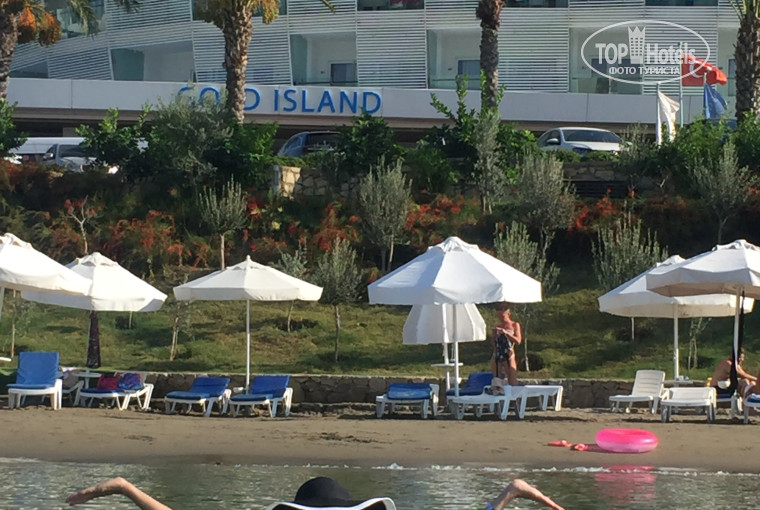 Небольшой, уютный, современный отель. Проживали в блоке Б, на шестом этаже, с видом на главный корпус (блок А) и на море. Утро начиналось с выхода на балкон и радости от шикарного вида на море, горы, пальмы, а ночью ещё и на красивое светящееся овальное здание блока А. Номер у нас был стандартный 2+1(двухспалка, односпалка и детская кроватка), полотенец в момент заселения был некомплект и зубной пасты не было, но после третьего звонка к вечеру принесли. На ресепшн сразу выдают карточки на пляжные полотенца. Уборка и смена белья в номере вначале была ежедневная, но последние три дня не убирались и полотенца не меняли, ну и мы не стали настаивать. Проводили целый день на море, с перерывами на еду. Два пляжа песчаных спокойных, один каменистый с волнами. Лежаков везде хватает и на море, и возле бассейнов. Внуку 3,5 года нравилось и на море, и в большом бассейне с джакузи. Отдельное спасибо работникам ресторанов, разнообразная еда и внимательное обслуживание. Официанты и турки, и киргизы все приветливые, услужливые. Понравилась пенная вечеринка, выступление акробатов из Монголии, турецкая ночь...Под конец отдыха сходила на утреннюю гимнастику и пожалела, что раньше ленилась уходить с моря на проводимые спортивные занятия. В общем, впечатления от отеля и от обслуживания положительные. Спасибо @goldislandhotel !