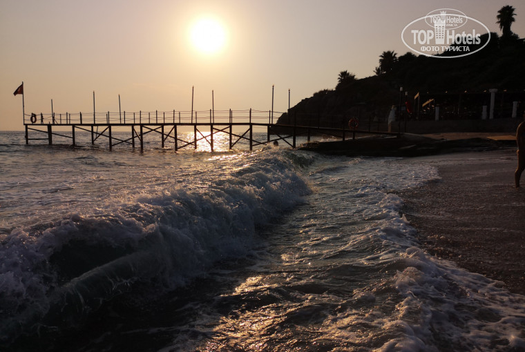 Море - тёплое, волнистое и на дне есть камни и чуть подальше плита. Из-за того что всегда волны сама вода не очень чистая. С малышами не очень хорошо будет. Лежаков хватало всем. Сами лежаки староватые.