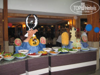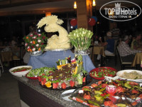Не знаю, какие гурманы ездят и что они себе дома выготавливают, лично мы от питания в восторге. Особенно сыр творожный (к сожалению не знаю правильного названия). Овощей много, фруктов тоже (арбузы, дыни, виноград, сливы), мясо птицы в изобилии, то, что из фарша, чувствуется соя, но никто ж не заставляет, берите другое, хлеб очень вкусный, ну и безе на десерт сказка. Раз в неделю вечер турецкой кухни, много национальных блюд. А еще днем к бассейну привозили или мороженое, или блинчики. И, что для наших людей немаловажно, спиртное в лобби-баре круглосуточно (бесплатно все местного производства: вино, водка, ракия, джин, различные ликеры и даже виски).