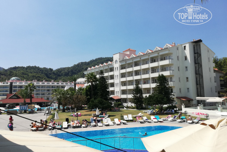 приехали мы в 23,50 в отель, номер у нас был семейного типа, заселили быстро, дали ключ и мы пошли в номер, вещи принесли работники, зашли в номер и немного шок( ванна с ржавчиной, но терпимо, кондиционер не охлаждал, а остальное все нормально, не шик) на утро встретились с гидом сказали какие у нас проблемы и вы знаете в этот же день все исправили, кондиционер работал как новый. за это огромное спасибо ТЕЗТУР. до моря метров 250-300, сходили один раз с ребенком, т.к. ребенок плавать не умеет, а возле берега рыбки пристают и непрятно в тебя тыкают. что касается еды тут все ОТЛИЧНО, голодные не будити это точно, фрукты арбуз дыня сливы яблоки виноград и что-то еще, сладостей было очень много ребенок был доволен.2 корпуса в том где ресепшен номера неочено а вот во втором корпусе ребята которые не первый раз отдыхают то говорят намного лучше, ВЫВОД я бы его посетил еще раз. Все рядом