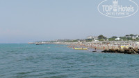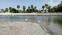 Пляж неплохой — песок, полоса гальки, и, несмотря на наличие чёрного браслета, мы ходили на общий, — он ближе и лучше, чем тот, за рекой, где проход на глубину очень и очень узкий.