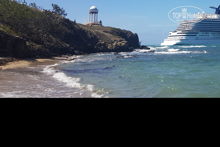 Территория очень большая...после завтрака повезло...пошли на океан а там огромный лайнер из Майами...15 этажей с аквапарком наверху....подплывает прям недаоеко от берега....супер зрелище....за 11 дней раз 6 приплывали наверное....как оказалось у них за скалой причал...стоят часов по 8 там...потом обратно уезжают...зрелище незабываемое????особенно когда отходил в темноте...весь в огнях???