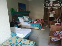 Отдыхал с женой и 2 детьми 10 и 9 лет в конце августа. Заселили в корпус maria номер standart plus (двух и односпальные кровати+раздвижное кресло). В принципе в номере всё есть, всё работает, сейф бесплатно, мини бар(2 воды+2 содовые) пополняют каждый день. Уборка на 4,можно было бы и получше(чаевые регулярно+пару шоколадок не помогли). Территория небольшая, но зелёная, много плодовых деревьев даже хурма. Основная через дорогу, называется daima planet. Там большой бассейн, лягушатник и 5 горок. Рядом бар работает до полуночи, что очень порадовало и снек-бар до 16.00,где можно поесть шаверму, овощи, кортофель фри, арбуз и т.д. Мы вообще в ресторан на обед не ходили, ели в снек-баре. Очень удобно утром позавтракали, пошли на море в час дня пообедали в снек-баре(можно не переодеваться),потом сразу в аквапарк dolu su (он находится рядом) до 17.00,затем опять на море и вечером на ужин. Получается целый день отдыхаешь В номере только утром и вечером. Аквапарк очень крутой, я много где был в аквапарках этот самый экстремальный. Но детям ростом 120см разрешают кататься на любых даже самых экстремальных горках очень порадовало. Для тех кто не из daima вход 30$ и то если купили у гида на улице, а так 45$. Вообщем только ради аквапарка стоило приехать. А для малышей бассейн с маленькими горками и детским городком, даже моим детям он очень понравился. Ещё днём пенная дискотека на пляже от аквапарка для всех, нам нравилась. Море чистое, прозрачное. Вход немного каменист, для кого проблема купите тапки в магазине в отеле(недорого). Есть пирс, можно понырять. Кстати у пирса всегда много разных рыбёшек. Я их кормил варёными яйцами под водой, очень прикольно, почти как в красном море. Море очень тёплое и ласковое, вообщем тоже развлечение. Пляж большой лежаков много, бывает конечно, что приходится поискать, но места всем хватает. Полотенца за депозит 10$.Есть любые водные развлечения за доп.плату. Короче всё для полноценного отдыха. Здесь же рядом сцена для детской и взрослой анимации, моим нравилась, вообщем как везде в Турции(кто был тот поймёт). Мороженое неплохое 1 шарик 1$,детям очень нравилось. Для детей есть всё - игровые автоматы, карусель, машинки, попкорн, кукуруза все 33 удовольствия. Даже кинотеатр под открытым небом.После взрослой анимации дискотека, можно отвести душу, очень удобно потому что на основной территории у отеля полная тишина, кто хочет спать спит. У в хода в daima planet можно взять в прокат 3-х местный мопед за 10$ в час, 2-х местный за 7$,мы прикольно покатались по Киришу. Рядом с отелем по дороге на лево много магазинов, только там очень дорого надо торговаться. Мы ездили на базар в Кемер на маршрутке за 3 лиры(около 15мин) он там по вторникам. Цены в 2 раза дешевле, ещё и поторговаться можно и нужно. В основном ресторане кормят отлично. Рыба, любое мясо, разнообразные гарниры, десерт, фрукты,даже раки варёные. На завтрак как обычно яйца в разных видах, каши. Мне больше понравилось, что дают инжир, курагу, халву, лукум, изюм и всё это в неограниченных количествах. Короче еды полно всяко разно и всё очень вкусно. Алкоголь тоже разный местный виски, джин, ром, текила, раки, вермут, беллис+куча сиропов для коктейлей, ещё вино и пиво. Всё бесплатно до полуночи. Короче отличный отель для семейного и детского отдыха, я бы сюда вернулся. Для молодых тусовщиков будет скучно.