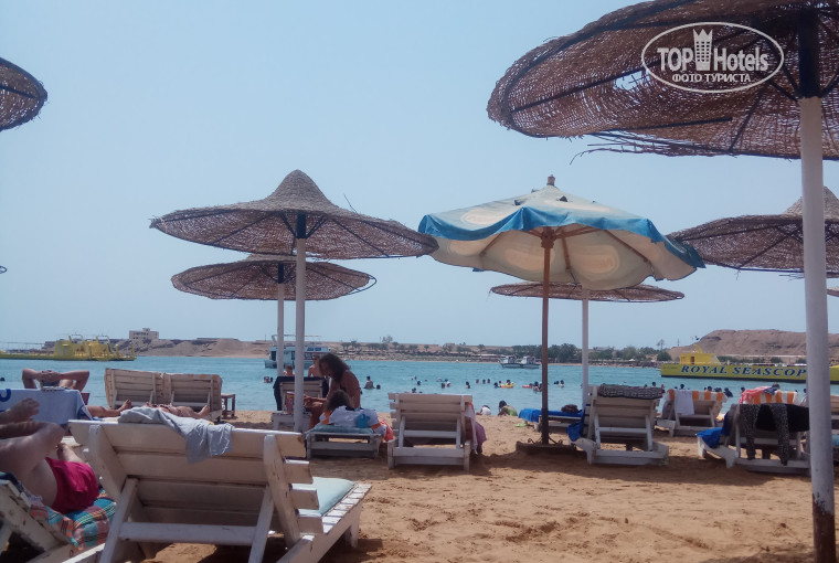 на пляж возит автобус несколько раз в день, начиная с 9 утра, с пляжа первый уезжает в 12:30, последний в 16:30, ехать минут 10. Пляжик песочный, вход планый, правда буйки расположены на уровне груди, но никто не запрещает через них переплывать) на этом пляже тоже очень хорошо, полежать, поплавать, порелаксировать, но с маской там смотреть нечего. Около отеля есть платный пляж, пускает только отель Reef Beach за 3$ на человека, но мы с горем пополам сторговались 3 доллара за двоих) и так каждый раз) ту входа в воду как такового нет, либо прыгать, либо лесенка, сразу нереальная глубина, но красота неописуемая, с маской и трубкой можно провести хоть весь день, все равно не насмотреться, коралловый риф вдоль всего берега, так что можно плавать и плавать и плавать)))
