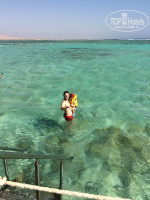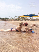 Пляж. Я читала, что с берега купаться невозможно, что там камни и воды очень мало. На деле оказалось все намного лучше. С ребенком идеальный вариант, да, мелко, но для двухлетки - просто супер. На берегу обходились без обуви. Понтон длинный, есть несколько спусков. Во время нашего отдыха было ветрено, поэтому самый дальний спуск был закрыт, но нам хватало предпоследнего. Там можно понырять с маской, посмотреть рыбок и кораллы, воды максимум по грудь. На берегу лежаков много.