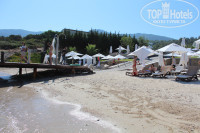 Пляж и море отличные. Места всегда хватало, если хотелось именно здесь, а лежака нет, по просьбе тут же передвигали ребята лежак и зонтик. Море утром всегда кристальное, вечером бывали маленькие волны и листочки с деревьев и песок на входе. Но вода и пляж постоянно убираются. На входе в воду пару метров галька. Но дискомфорта нам лично это никакого не доставляло. Море действительно местами очень холодное, местами очень теплое. С пирса теплее. Но мы нагрузок не боялись и с берега доплывали до буйков, получая контрастный душ и заряд бодрости. На пляж из бара приносят напитки. Мороженое, кукуруза, огурец с солью(очень освежает) по вечерам. Минусом было огромное количество курящих вокруг, хотелось бы зону "для некурящих".