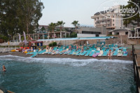 Пляж и правда узкий,маленький, и с детьми там делать нечего, берег- мелкая галька и сразу углубляется. Но зато поплавать самОе то, наплавались вдоволь, вода прозрачная,чистая, ,очень комфортной температуры, волна настолько ласковая, просто не хотелось выходить. Такого кайфа от плавания я давно не получала. Лежаки занимают с утра, но мы и приходили к 7 и до 9-ти плавали,потом уходили,оставляя лежаки свободными,чем удивляли окружающих.Не любители мы лежания на лежаках. Потом приходили на пляж в районе 17-ти часов или даже после ужина,народу почти нет и все лежаки ваши. На мой взгляд, наши туристы сами виноваты в отсутствии лежаков, ,позанимают все места и гуляют где-то. На пляже только бар и это громко сказано, кофе растворимый и искусств. напитки, типа соки. Туалета и раздевалки нет, есть, ну очень простой душ, чтобы ополоснуться. Про дорогу на пляж тут писали. Если вся дорога от отеля до пляжа-200 м(замеряла шагометром), то идти мимо мусорок метров 30. Т.к. мы ходили рано утром, то никого еще не было, возвращались..ну да..были иногда неприятные запахи, но ничего,мы не баре,ускоришься ,минутка и ты уже возле своего отеля.!! Все равно это лучше,чем ездить на пляж на автобусе (наблюдали давку у одного из отеля без своего пляжа). Ну или покупайте отель на первой линии,это же ваш выбор,ваши деньги...