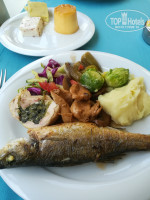 На счёт питания: выбор большой: и разнообразное мясо (телятина, курица, баранина, индейка, язык, свинина); рыба (на гриле, жареная, на пару); овощи свежие, и приготовленные на пару, гриле, тушеные, вареные), большое разнообразие сыров (много соленых), колбас, выпечки, сладостей. Из фруктов: каждый день арбуз, дыня, яблоки, апельсины. Часто были сливы, они твердые, о сладкие. Пару раз были персики. Всегда были супы-пюре. Сытыми были всегда. Всем хватало и тарелок, и столиков и еды. Между основными приемами пищи, желающие могут выпить чай, кофе, соки, пиво, алкогольные и безалкогольные напитки в барах: у основного бассейна, в лобби, на пляже. В лобби на против главного входа в отель днем накрыт стол (несколько видов выпечки, сок, яблоки). С 16 - 20 часов на минус 1 этаже можно полакомиться мороженным.