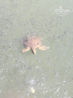 Пляж песчаный, ровный, вода теплая. Волны на море были каждый день, но это не мешало купаться. Лежаков хватало. В отеле выдавали пляжные полотенца, но минус в том, что менять полотенца можно только в определенные часы: сдавать с 16.30 - 17.30, а получать на следующее утро с 9.00. Мы на море ходили в 8 часов. Примерно с 11-16 часов старались меньше находиться на открытом солнце (в это время оно очень активное, очень жарко). В минутах 20 ходьбы в правую сторону по пляжу есть речка, впадающая в море, в ней живут черепахи. Мы брали в отеле на завтрак вареные яйца и ходили их кормить черепах и рыб.