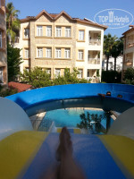 Начнем с того что брали тур на 12 дней со 2 по 13 сентября еще в январе за 2 взрослых и ребенка 4 лет всего за 65 тр. через Пегас. Вылет вовремя, без задержек,рано утром были на месте, заселили часов в 10 утра уже, сразу же на завтрак проводили. Причем наш номер который предполагали 506 был еще не готов, сказали хотите подождите, он выходит на бассейн, либо есть другой уже готовый и поспокойнее 1101, мы выбрали тот что спокойнее и не прогадали, находится на 1 этаже, на полу ламинат, большой, кухня, плитка кстати тоже есть электричекая (стоит в шкафу не сразу увидели), хотя не и не пользовались.Уборка каждый день, оставляли либо доллар либо около 6 лир в знак благодарности, без претензий. Планшет, телефоны лежали на столе, деньги правда прятали. Белье чистое, не рваное. Душ, туалет так же без нареканий.Персонал начиная от садовника с его потрясающей территорией заканчивая ребятами на кухне-без вопросы молодцы. Сама кухня для нашего ребенка не очень подошла, хотя выбор есть, ну тут у детей свои вкусы.Бессейны чистые, в баре ребенок может посмотреть мультики, поигорать в соньку,взрослые поиграть в бильярд.Анимация раза 3 в неделю по часу, в принципе ее и не ждали, так как про это знали . трансфер на пляж каждые 15 минут с веселым водителем.Сам пляж небольшой, но чистый, лежаков хватало, а вот матрасов не всегда