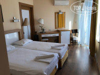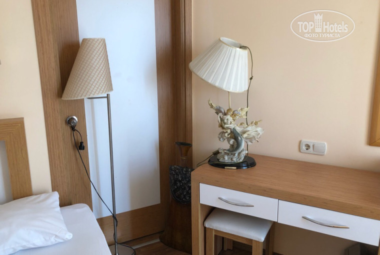 Приехали вечером, комнату дали сразу, на 5 этаже, с видом на море и на мечеть, надо отдать должное расположению отеля, хоть он и городской, территории нет совсем, но расположение просто чудесное, для людей привыкших отдыхать активно оптимально - в самом центре, куча баров магазинов, пляж буквально в двух шагах через дорогу, но насколько я поняла лежаки, матрасы, зонтики, все за деньги.